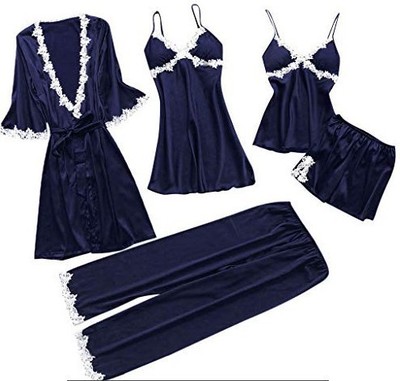 مجموعة بيجاما حرير تحتوي على 5 قطع، ستايل مثير أمريكي